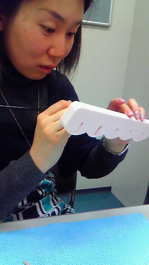 中川さんがラメフレンチの練習成果を写真に撮ってきてくれました