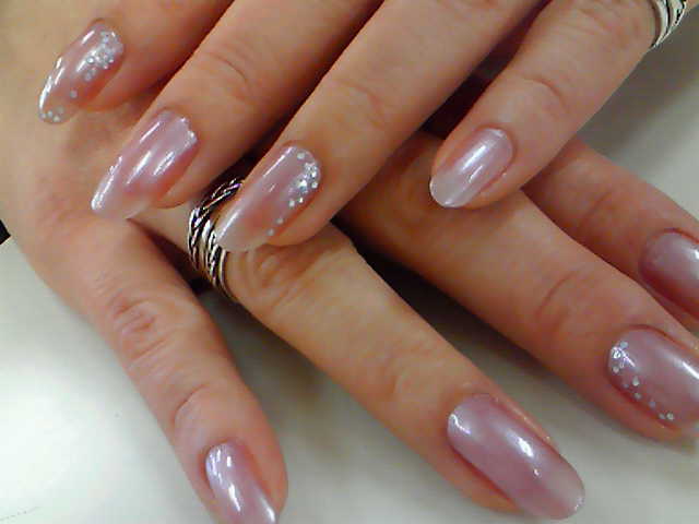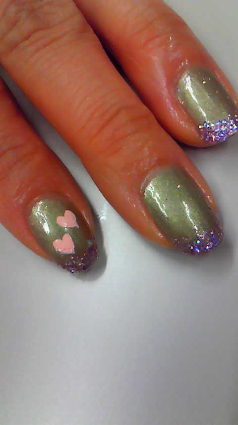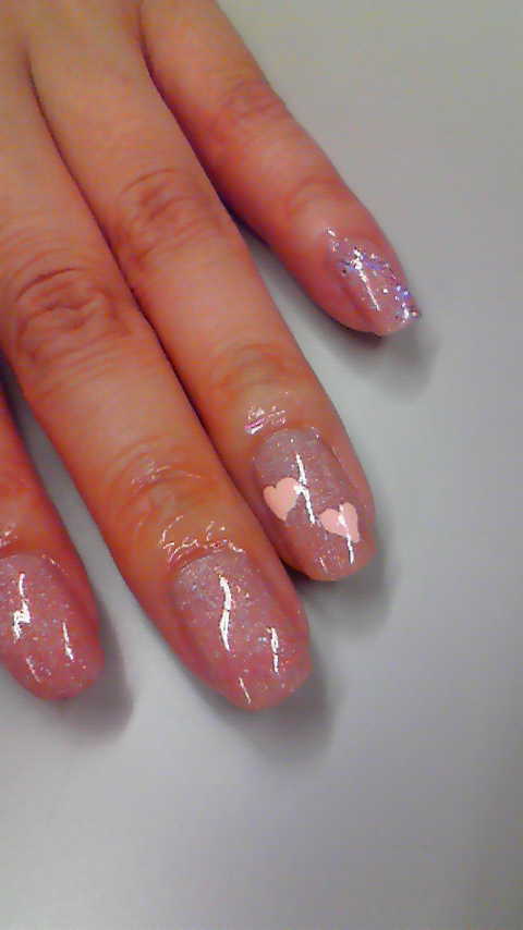 粉ラメの使い方とハート模様は筆かきです