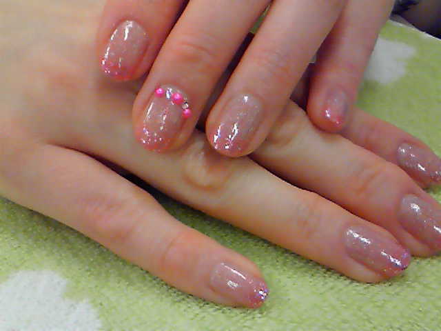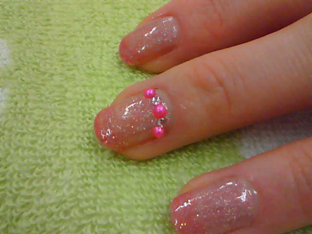 片手一本だけラインSTONEと丸ラメを加え