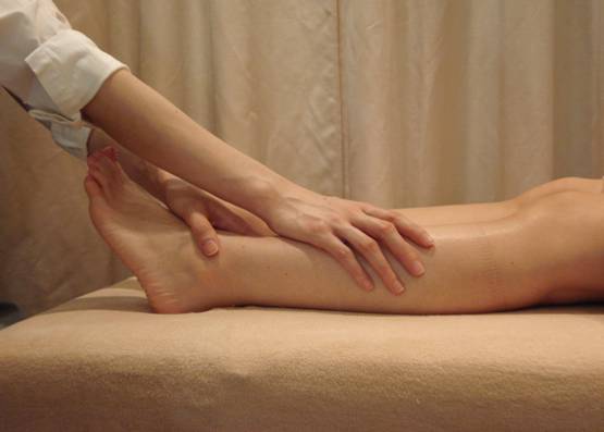 オイルを使った足裏とふくらはぎ(膝を含む)の